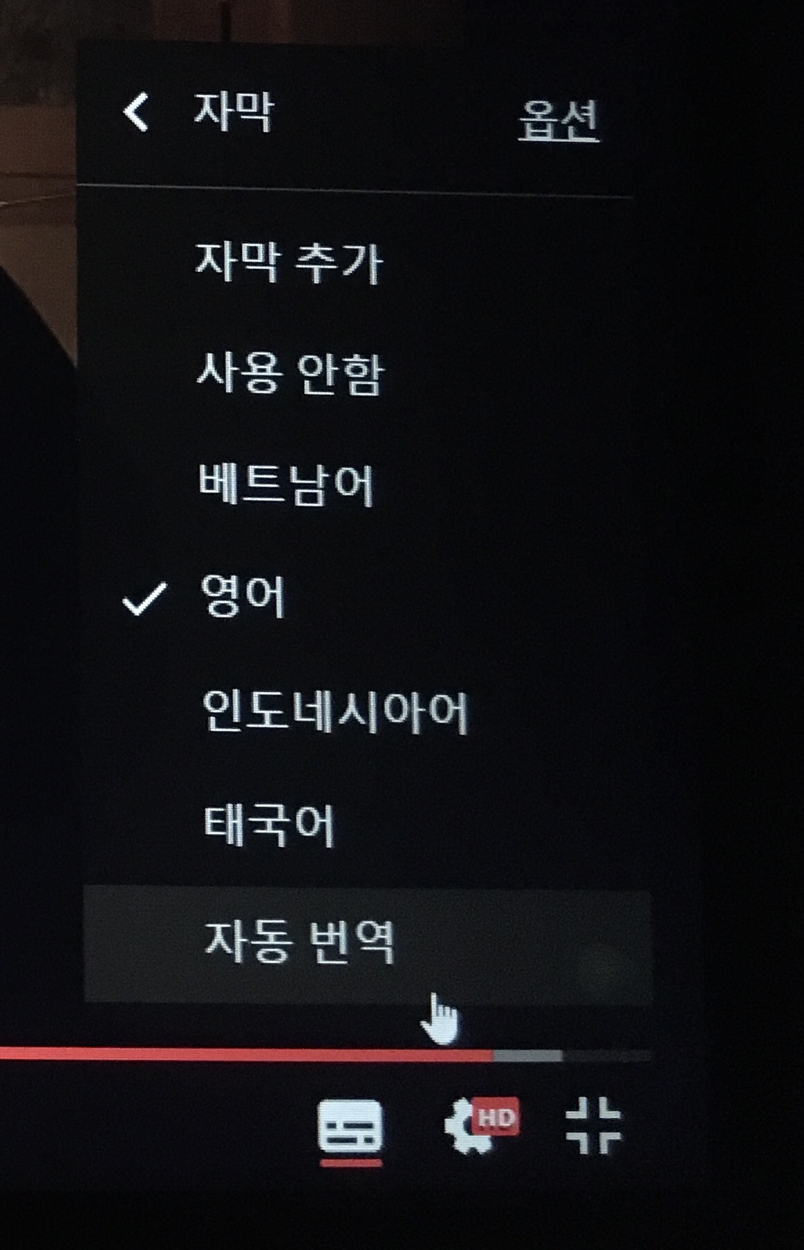 2. 만약 기본 자막이 영어로 되어 있지 않다면 설정에 들어가서 영어로 바꾸어줍니다.