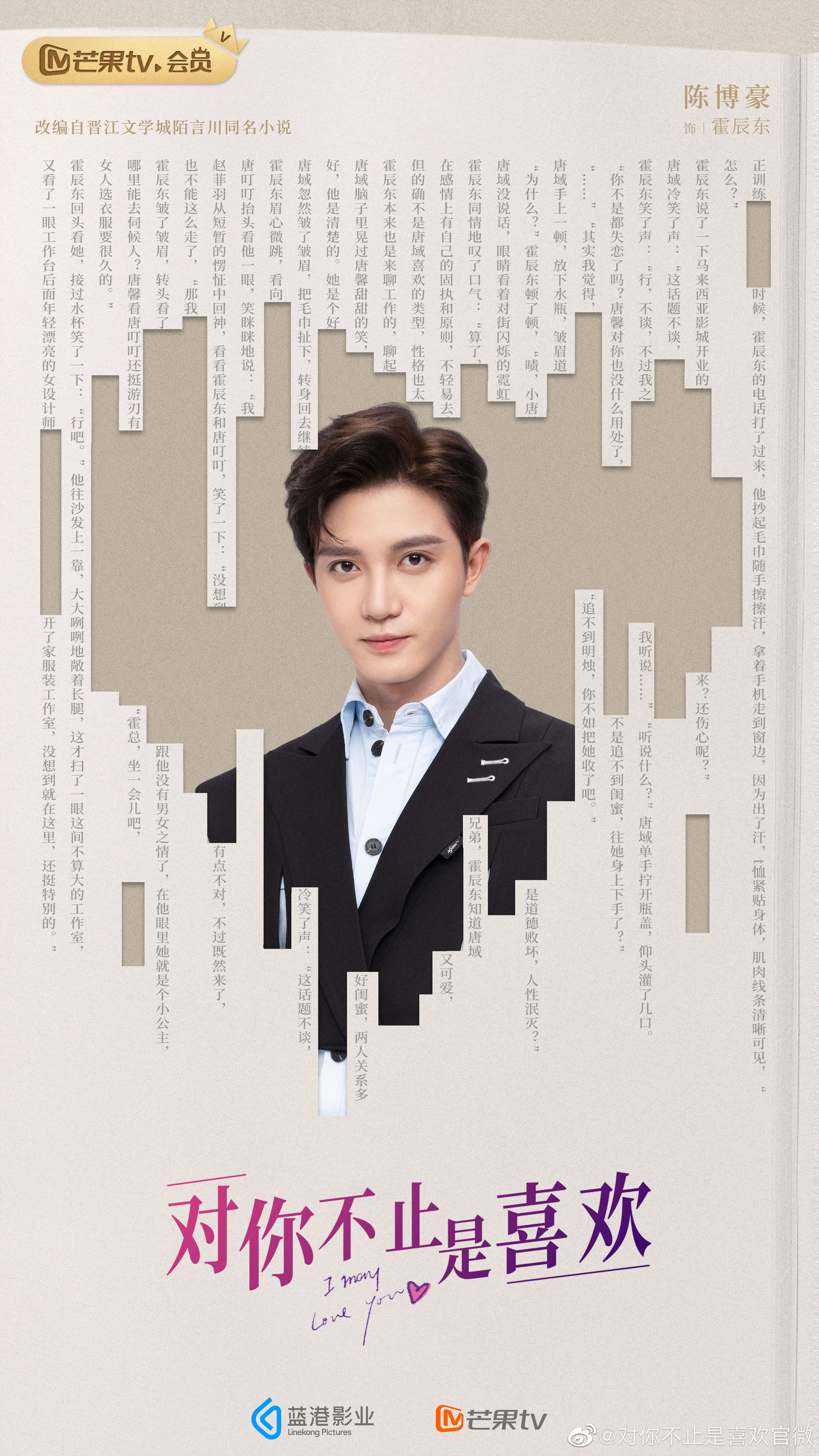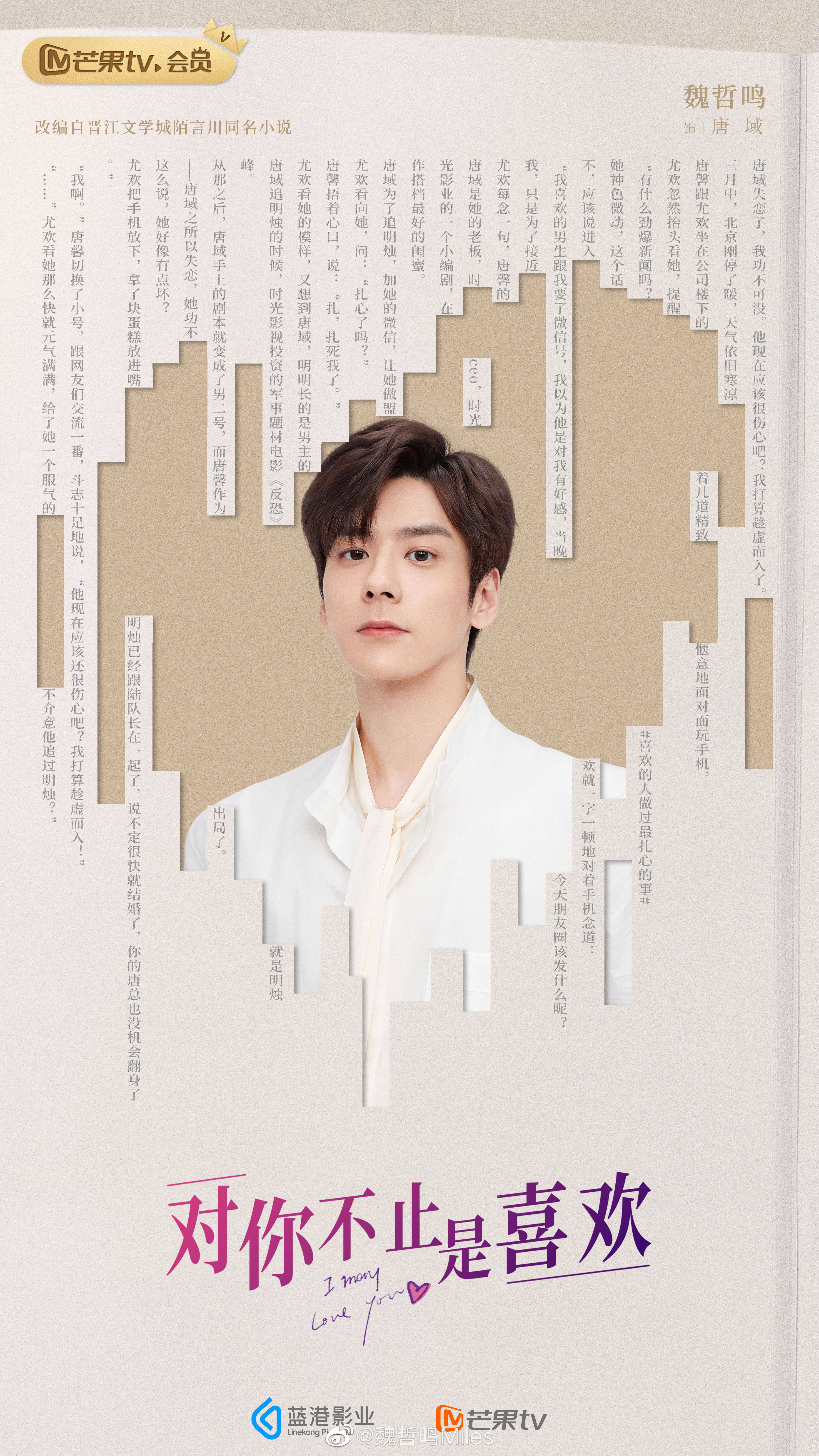 2022년 2월 23일 크랭크인 행사를 가진 위철명 황일영 주연의 로맨스 드라마 대니불지시희환 (Dui Ni Bu Zhi Shi Xi Huan 对你不止是喜欢) 영문제목은 I May Love You 입니다. 한국명으로 하자면 너만 좋아하는 게 아니야 정도가 되지 않을까 생각해봅니다. 영문제목이나 직역은 다를지언정 어쨌든 다 비슷한 의미죠. 아래 줄거리 보시면 아시겠지만 여주의 짝사랑으로 시작되거든요.