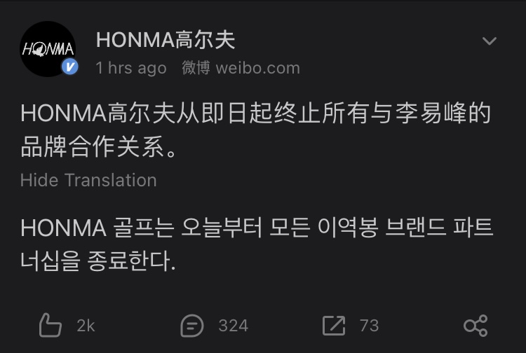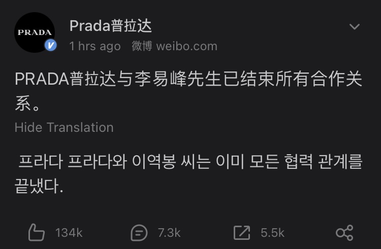몇일전부터 계속 웨이보가 시끄럽긴 했었거든요. 근데 이역봉 공작소에서도 그렇고 이역봉 본인도 아니라고 공문도 내고 그랬었는데 오늘 보니 싹 내려가 있더라고요.