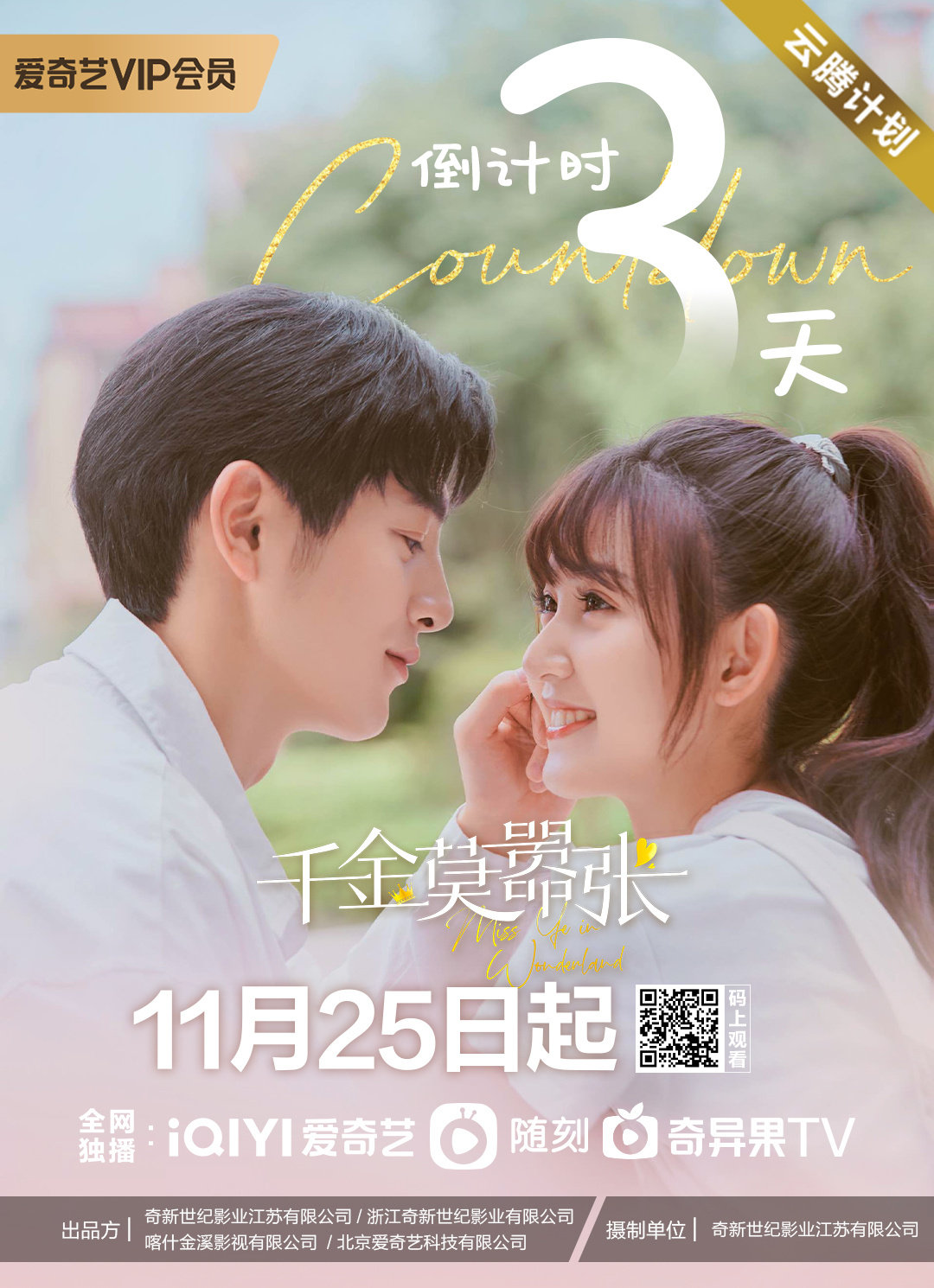 2021년 촬영된 작품으로 뭔가 아무 정보 없이 급 방영되는 듯한 기분인데요. 2022년 11월 25일부터 아이치이에서 방영될 예정입니다. 국제판에서도 한글자막방송이고요.